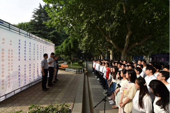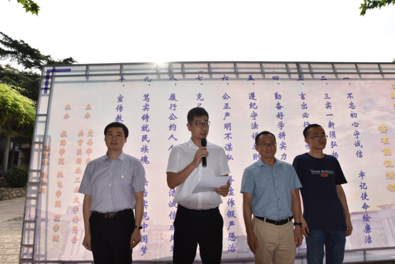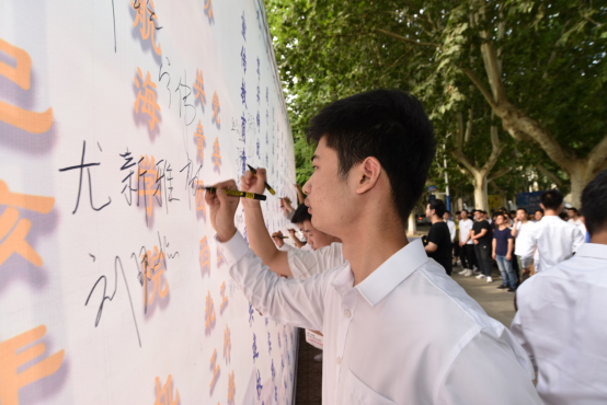 2019届本科毕业生代表,宋强林同学负责领誓。师生一起宣读公约、铭记誓言。并依次在展板上签名承诺,践行廉洁诚信公约。