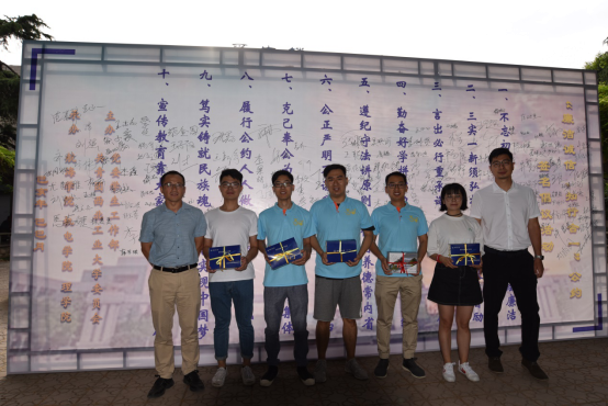 最后孙华强副书记,张龙老师与公约征集获奖同学合影留念。