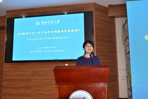 院长助理张龙出席报告会。友谊校区国际会议中心第五会议室座无虚席,来自全省20所高校心理中心的老师及我校师生近350人到场聆听。