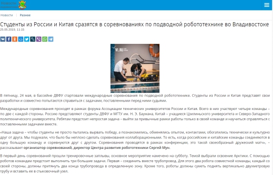 本次比赛受到了俄罗斯符拉迪沃斯托克市政府、莫斯科鲍曼国立技术大学等单位的跟踪报道,我校师生代表队荣登报道主页。