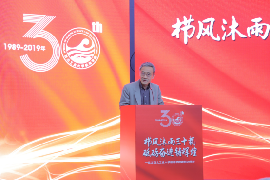 建制三十年来风雨兼程、不惧挑战的峥嵘历史,梳理了学院在这三十年里取得的主要成就和荣誉以及培养出来的一批又一批优秀人才。他说正是因为这些事、这些人,一点点汇集成我们的“航海精神”——敢为人先、攻坚克难、团结协作、无私奉献。