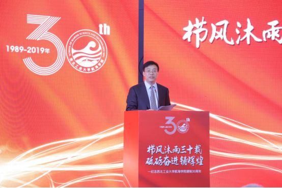 63年前诞生在西工大,顺应国家体制改革离开西工大近10年后又回归西工大,54年风雨历程成长在西工大,学院建制30年成绩卓著扎根在西工大,愿航海与航空、航天并驾齐驱,在西工大开出更加鲜艳的花朵,为国家的航海事业做出更大的贡献。