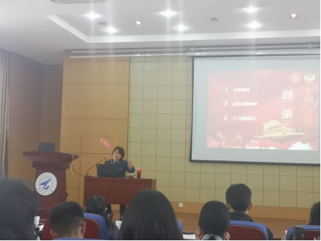 在报告过程中,古清月老师根据自己作为全国人大代表的亲身经历,讲述了自己在十三届全国人民代表大会上的成长、感悟与收获。同时,古老师着重介绍了自己在本届人民代表大会上的提案,阐述“公益”与“扶贫”的意义和对一个国家与社会发展的深远影响。聊到自己曾经的校园生活,古老师结合自己参加“西工大志恩者研究生支教团”以及发起“金色哈达”爱心助学活动的经历,畅谈自己在这个过程中的所见所闻。她由衷地希望让连心之桥,飘荡起金色哈达;让菁菁校园,汇聚出向善力量。也希望自己能将一颗志愿的种子深深扎根在学生心中。