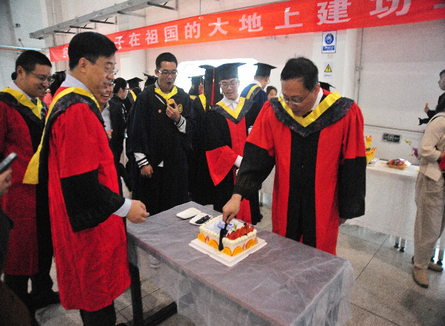 水池实验楼;和从自全国各地赶来观礼的毕业生亲友一起分享了学院精心准备的毕业主题蛋糕,品尝了精美的糕点、水果和饮料;并在冷餐会现场与博士、硕士毕业生合影留念。
