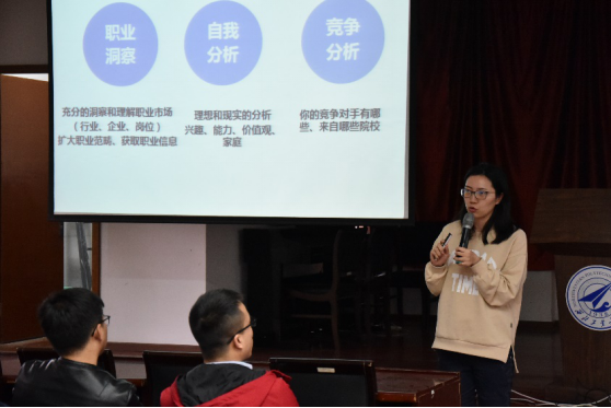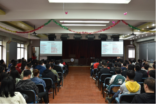 活动伊始,王彦革副书记介绍了两位主讲老师的履历,强调了本次活动的意义。随后,王莉副部长主要介绍了目前学校、学院毕业生的就业形势和数质量情况,以及求职过程中的一些经验技巧等,在分享过程中穿插了很多升学求职小故事,不仅活跃了气氛,还加深了同学们的印象。同时,她鼓励大家在求职过程中不要纠结,要大胆尝试,要敢于、勇于、善于全面展示自己的能力,努力实现自己的职业梦想。