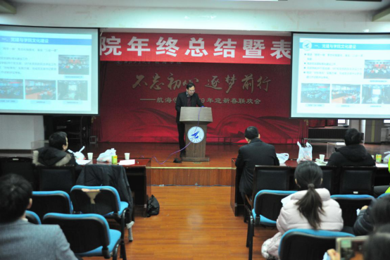 2018年度总结暨表彰大会在学院东配楼隆重举行。学院领导班子及全体教职工参加会议,会议由党委书记王英民主持。