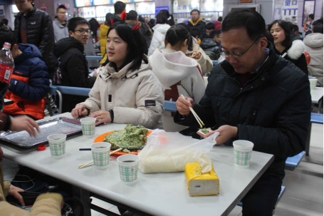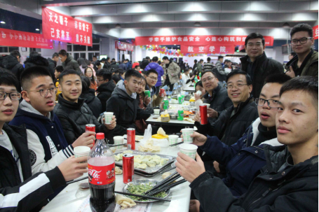 下午五点之后,老师们、同学门陆续到达云餐一楼,现场顿时热闹了起来,大家其乐融融,包饺子、煮饺子,不少老师现场教学同学们包饺子。来自五湖四海的同学们大展才艺,包出颇具家乡特色的饺子,现场洋溢着欢声笑语,大家比赛谁的饺子包的又快又好,谁包的饺子最漂亮。以包饺子、吃团圆餐的形式来迎接新年,是对2018年生活的结束和对2019的美好祝愿。在一片欢声笑语中,我们“再出发”,再次踏上全新的征程,无论等待着我们的是坦途还是荆棘,我们都愿意以高昂的姿态和必胜的信心去坦然接受。