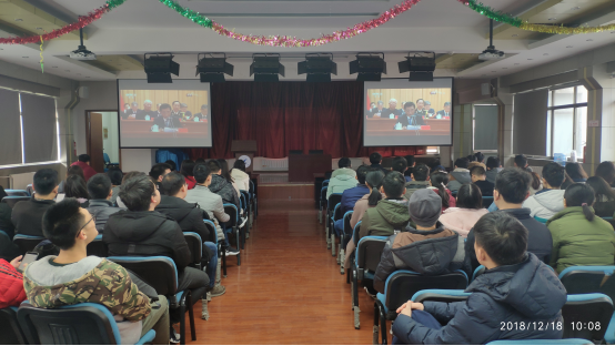 组织全院师生在学院东配楼集中收看了庆祝改革开放四十周年大会。