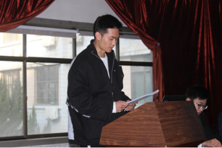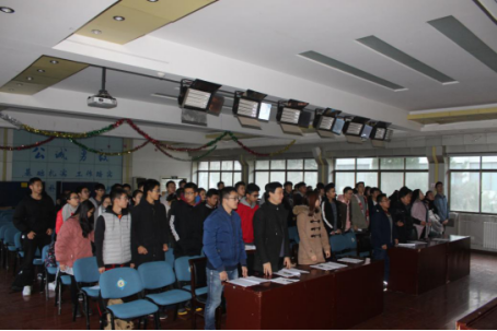 在高亢激昂的国歌声中,会议拉开帷幕。首先,学院团委书记麻美龄老师发言,她对本届学生会在学院思想政治教育、日常规范管理、校风学风建设和校园文化建设等方面的工作中做出的积极贡献进行了肯定,同时,对今后的学生会工作提出了希望,希望学生会的全体成员将代表同学、服务同学作为自己工作的主旨,努力学习,积极进取,不断提高自身的科学文化素质和道德修养,真正起到模范带头作用,提高服务意识、服务能力,为学院的发展做出新的贡献。