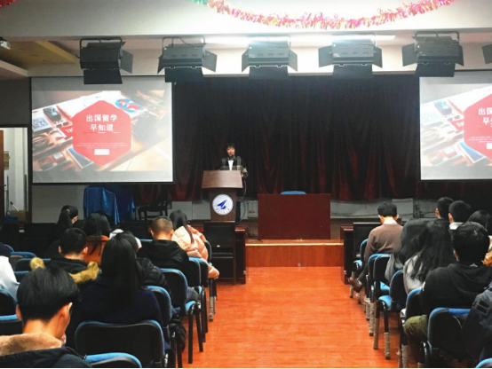 11月29日晚六点十分,主题为“扬帆航海看世界”出国留学交流会在探花视频