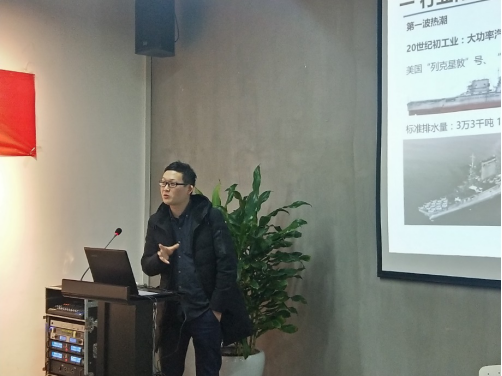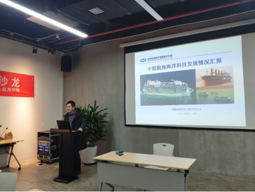 随后,中船航海科技有限公司光学惯导部主任刘俊成先生给大家介绍了公司发展情况。刘主任首先带领大家回顾了中船航海的发展历史,当今的科技创新概况,随后重点向大家介绍了两大未来重点产业的发展方向,分别是大型邮轮与智能船舶。刘主任指出,未来随着经济不断发展,科技不断进步,人们对更新颖的娱乐方式方式的渴求将进一步增加,类似于泰坦尼克号的大型邮轮定会大有市场。针对智能船舶,刘主任也提出,未来的智能船舶将会往高度智能化,自动化设备,智能自主决策,船队管理控制等方面进行发展。随后,刘主任从智能船舶的主要研究内容,发展路线,技术路线等方面向大家进行了具体介绍。最后,刘主任就同学提出的有关导航控制的问题,进行了详细耐心的讲解。