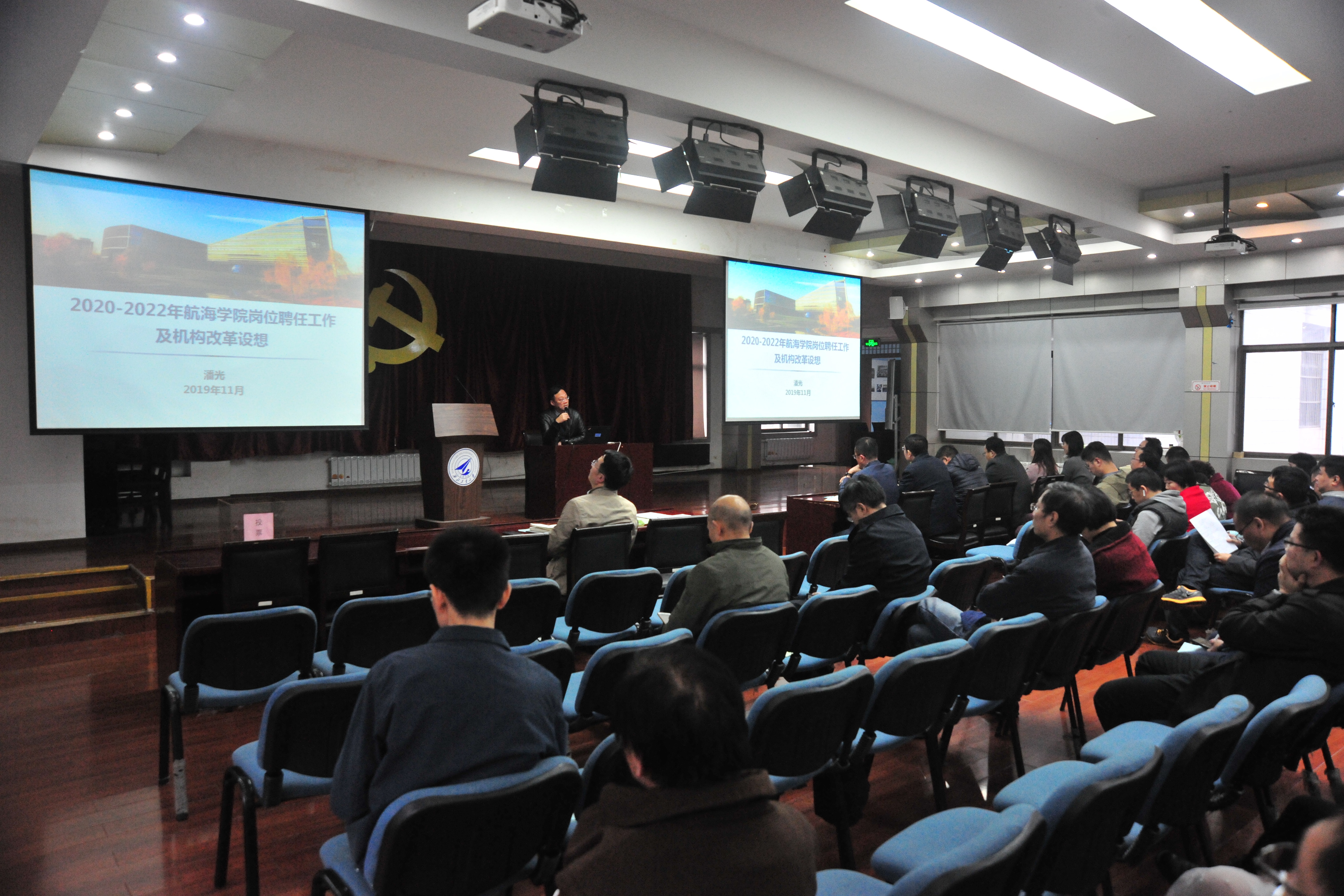 随后,潘光院长向大家全面解读了学院2020-2022年岗位聘任方案和机构改革设想。潘院长从岗位数量、上岗条件、岗位职责等几个方面详细介绍了本次聘任方案。他指出本次聘任方案是围绕建设一流学科和一流学院的发展战略,以“分系列、准长聘、责权利、AB轨”为总体思路,旨在通过人事制度的改革促进学科发展、高层次人才汇聚和标志性成果产出。他鼓励广大教师们立足自身现状,客观分析优劣势,积极对标目标岗位,做好申报和答辩准备,力争做到人岗匹配,人人有责,岗岗有责。