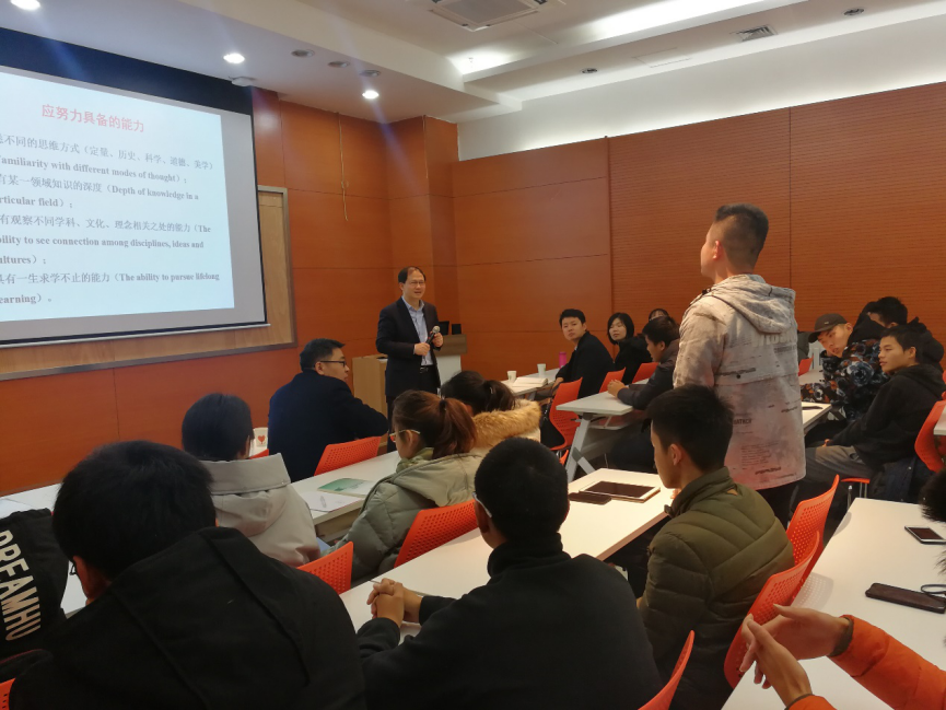 随后杨教授鼓励同学们认真学习,不必纠结暂时想不清楚的问题,先做好当下的事并逐渐去寻找答案;同时不能只顾眼前的得失,也要看到个人长远的发展。杨教授希望同学们保持积极向上的姿态,在大一短暂的时光中努力提高自己各方面的能力,为今后的学习和工作打下坚实的基础。此外,杨教授还详细讲述了大学期间应具备的各项能力,为同学们今后的发展指明了方向。